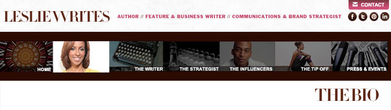 Raised in Chicago and on the Big Island of Hawaii, Leslie has long been an accomplished writer and communications executive. She writes feature articles and blog posts for her ever-popular website, lesliewrites.com, which she launched in 2003, and fitness articles for a national magazine. She also writes speeches for corporate executives and powerful female entrepreneurs. Leslie has interviewed many fascinating people from actress, producer and director, Angela Bassett to actor and philanthropist, Isaiah Washington; from philanthropist and former NBA champion Alonzo Mourning to Chicago Cubs owner and University of Chicago alumnus, Tom Ricketts.